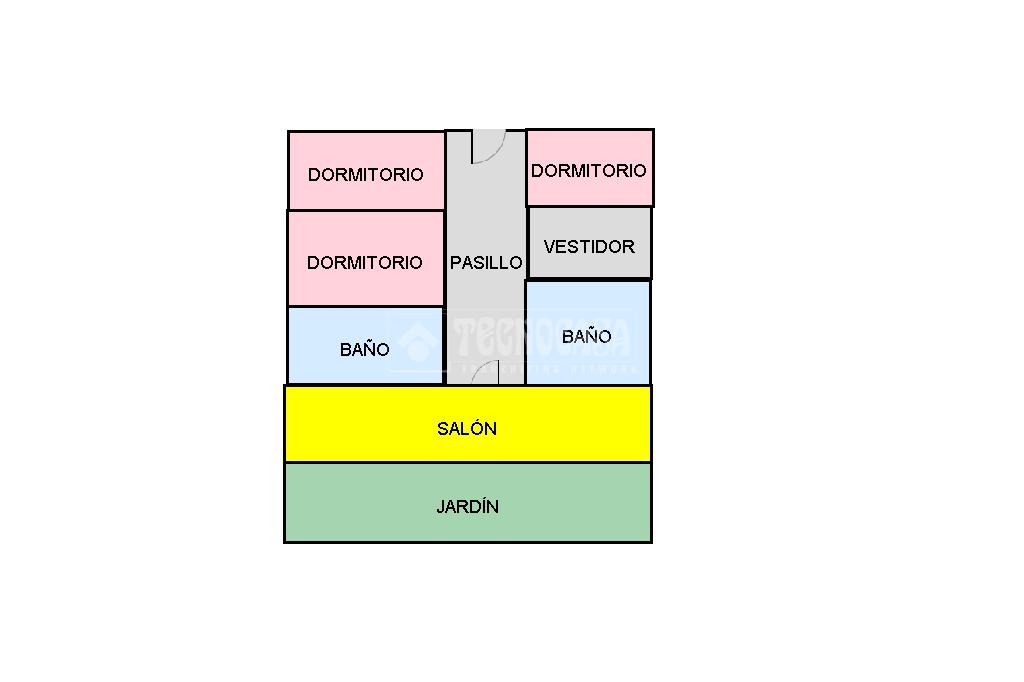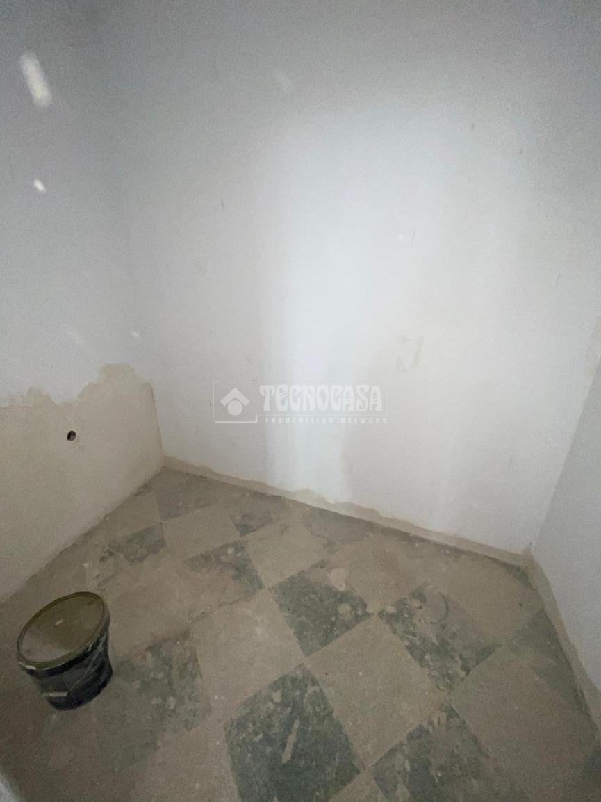 La distribución actual es de salón-cocina con ventanales (a poner) hacia el patio, 2 dormitorios con vestidor y el matrimonial con baño propio, baño común y pequeño habitáculo como despacho u otro uso similar.