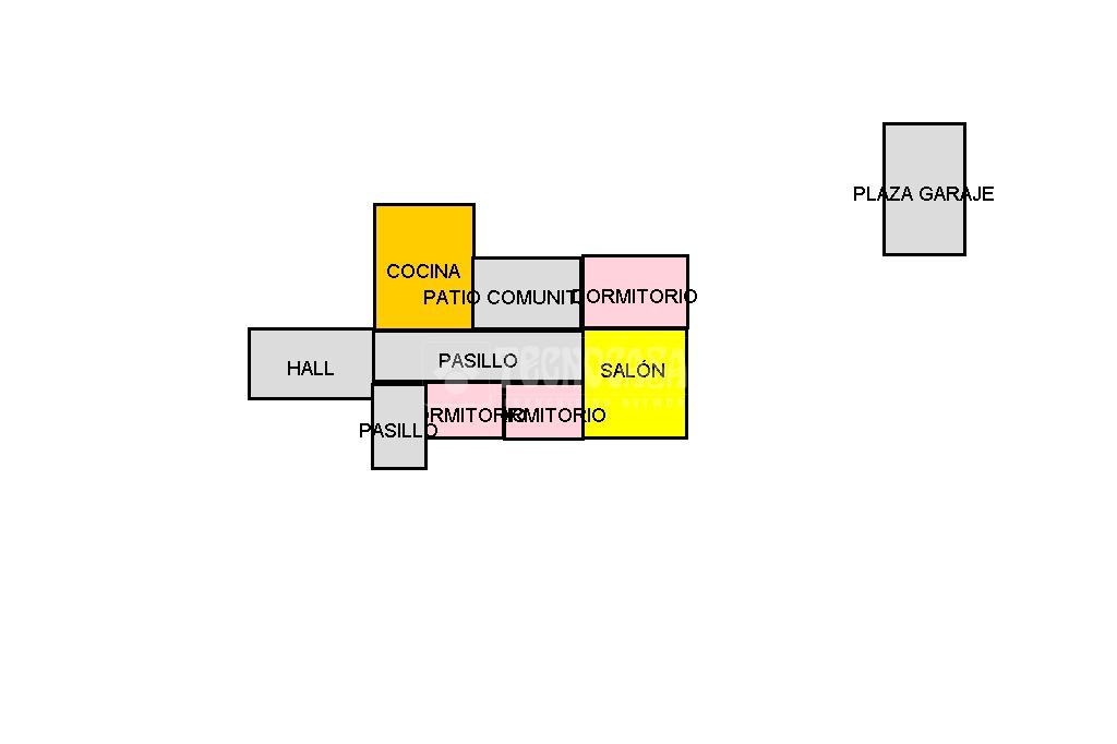 El inmueble consta de hall, 3 dormitorios (la suite con armario empotrado), salón, 1 baño completo con bañera y cocina con un patio comunitario pero de uso y disfrute para los propietarios.
