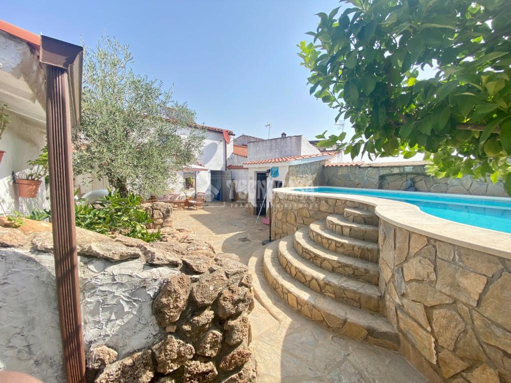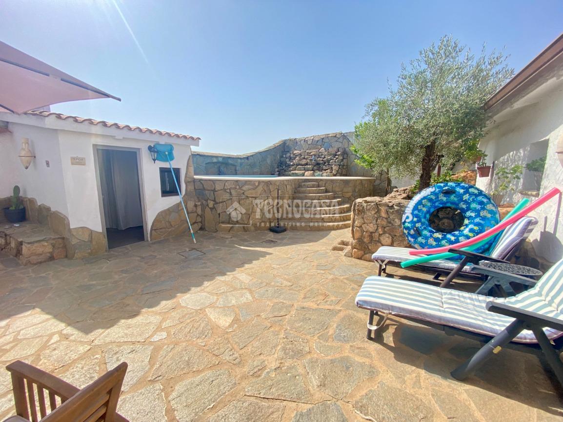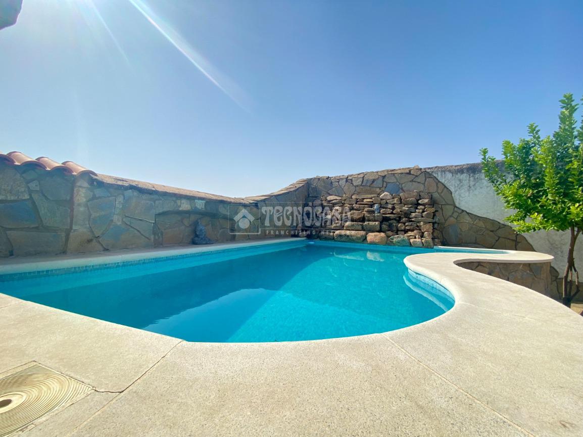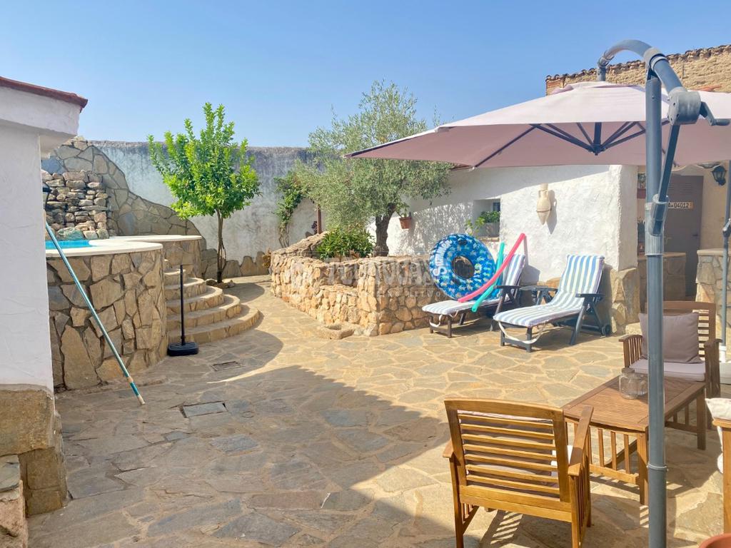 En la planta baja hay una puerta en la parte trasera por la que se accede al bonito y espacioso patio donde se encuentra una habitáculo (se puede tratar como trastero, transformar en una zona de ocio o incluso una habitación más), un baño completo exterior, dos zonas con toldos ideales para eventos o barbacoas y la fantástica y bonita piscina con llenado estilo cascada.