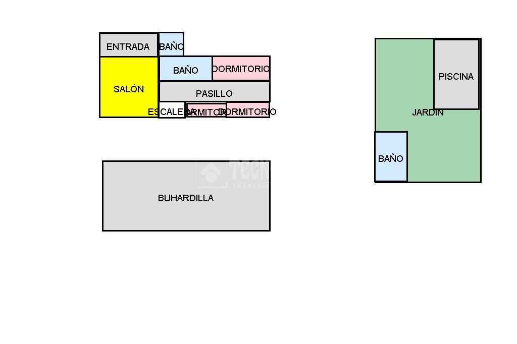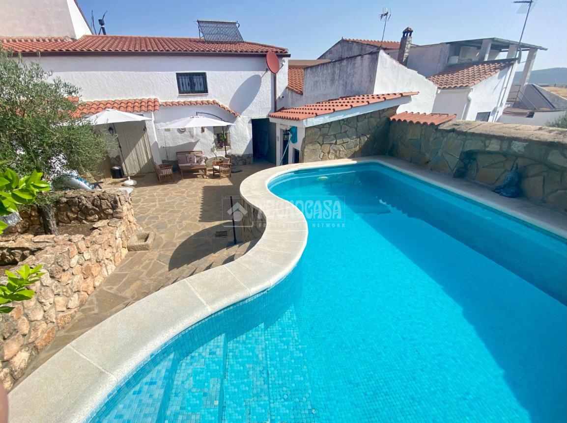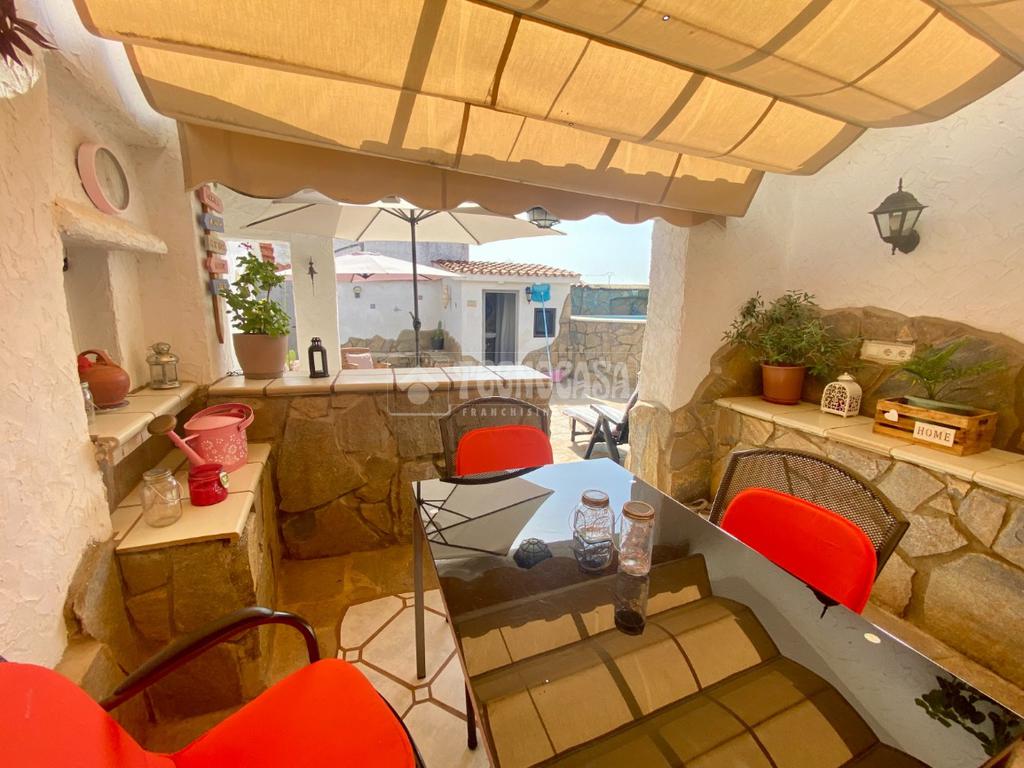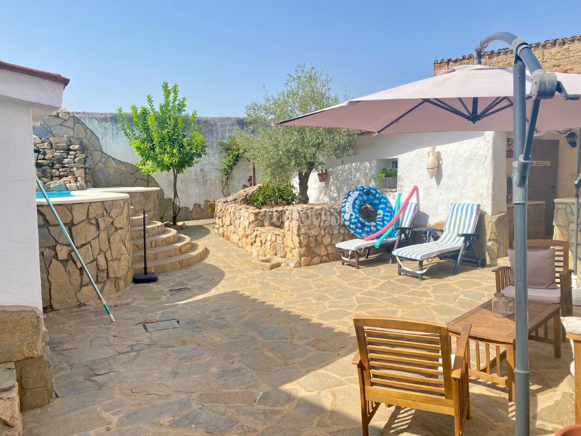 En la planta baja hay una puerta en la parte trasera por la que se accede al bonito y espacioso patio donde se encuentra una habitáculo (se puede tratar como trastero, transformar en una zona de ocio o incluso una habitación más), un baño completo exterior, dos zonas con toldos ideales para eventos o barbacoas y la fantástica y bonita piscina con llenado estilo cascada.
